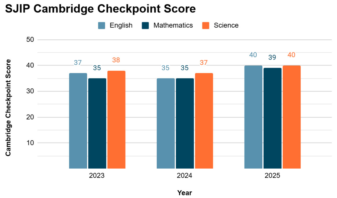 St. John’s International Primary School has shown steady Checkpoint academic progress across English, Mathematics, and Science over the past three years. Our results data reflects consistent performance in 2023 and 2024, followed by a clear improvement in 2025, with the highest achievement levels recorded across all three subjects. This upward trend highlights the strength of our academic programmes, targeted support, and dedicated teaching team in driving student success.